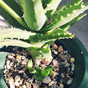 地元のお祭りでワンコインどころか、五十円で連れかえったアロエ。二年?たち、子供👶が二つ出てきてる