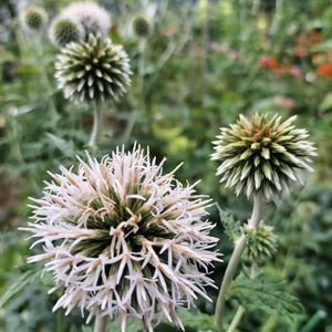 ルリタマアザミ お花が咲き始めたのですが 白い色でした😅 ラベルにはエキノプスリトロと書いてあって 青色のお花の写真なのに... 調べたらエキノプススターフロストみたいです。 ヤマアジサイに続いてラベル間違い2回目💦 また青色の子をお迎えしなくちゃ。