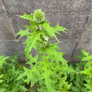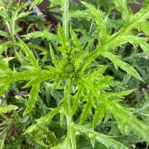 ルリタマアザミ。 蕾が見えた。 3株植えて、一株は元気。 一株は弱々しく。 一株は死亡😱