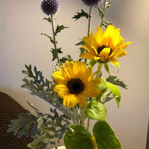 おはようございます🌼🍃 ひまわりさん背丈は低くなったけど… まだガンバって咲いてくれてます💖 ルリタマアザミも元気です💛