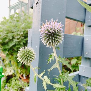ルリタマアザミ エキノプス‘ブルーグロー' 昨秋植えて初めての開花です❤️ 紫になるはずだけど、この色のままでも良いかも🎶