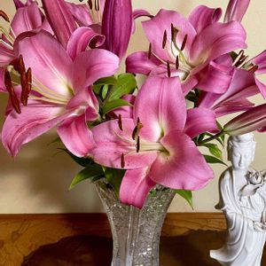 庭でピンクのカサブランカが咲きました🌸 床の間で撮り、窓辺で撮り、最終的にはおトイレの床へ💐 葉っぱを見つけるととにかく噛んでしまうアナタのためよ🌿 GS初登場のときは0才だったキキちゃんも、今ではもう5才😸 ☁️𓈒𓂂𓂃◌𓈒𓐍☁️𓈒𓂂𓂃◌𓈒𓐍☁️𓈒 このピンクのカサブランカが開花するのは今年で4年目、そのわりに初投稿 なぜ?と自分に問うてハタと思い当たる そう、このお花が咲く頃は私はいつもバテ始めている 庭で芳香を放ちながらひっそりと咲く百合を眺めてちょっと投げやりになっている ならば今年はかなりイケてるんじゃない? いやいや、油断しないでおこう😅 🏷️ニャンニャン祭り