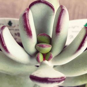 おはようございます⛅️ 青空は少し見えますが日がさしてこない、でも寒くもないおかしなお天気😒 それでも春は少しずつ近づいてきてるみたい☺️🍀 福娘の新芽をアップにして撮ってみたらお粉の纏わり具合もしっかり撮れました😄✨ それにしても新芽はお粉が付いてないのね〜👀 手前の葉が外れかけてますが根っこ出てこないかな🤗