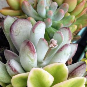3/21寄せ植え作成 福娘 と センペルビウム メモ📝 福娘の 葉の白い粉は、雨に当たったり手で触ったりすると、簡単にハゲてしまいます。 ハゲた部分に強い日差しが当たると葉焼けを起こしたり、そこから傷んでしまったり。 葉の上から水やりせずに、根元にかけるように。との記事! 気をつけて水やりします😄