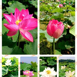 おはようございます🎶 昨日は隣の市内へ買い物ついでに『唐比ハス園』へ行って来ました❗ 1️⃣時計周りに右上から! 巨椋の炎 王子蓮 菊花粉 誠蓮 酔妃蓮 大紅袍 名札が立てられてましたが間違ってたらすみません💦 2️⃣ど根性蓮🤣‼️ ほぼ毎年行くのに、ベンチの間から😳‼️ 初めて見ました❗ 3️⃣唐比のハス園の全体の様子! 見学終えて車に戻ると汗だくでした🥵‼️ 4️⃣ここにはこれだけの(13種類)ハスが植えられてるそうで、草刈りされてるスタッフの方お疲れ様でした😅‼️