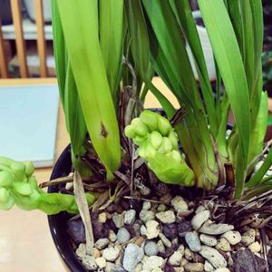 蕾が伸びて来ました❣️ 🌸シンビジュウム アイスキャスケード(枝垂れ咲き) 実父から譲られたシンビ。 今年はつぼみが3本出ました。🤗 枯らさない程度の面倒しかみれないのに 今年も健気に咲いてくれそうです。🥰 何年かウチにいて弱って来ると 父に返し、 また違う株を譲ってもらいます。😘 イイトコドリです。😅