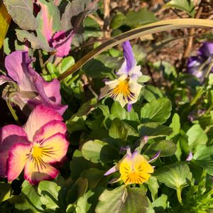 この前、お迎えした パンジー、ビオラの寄せ植えの一角です。 「わたしも撮ってぇ。」 「わたしも〜。」 「ちょっと、押さないでよぉ〜。」 みたいな⁉︎ 笑😅
