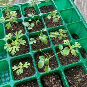 通販でレースフラワーの種を買って植えたら、なんだか3種類の芽が出て 大きくなってきた🌱🌱🌱🌱🌱✨ そろそろ本植えしようかと。