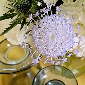 先日もらったブーケのブルーレースフラワーです❁.*・゚ まん丸の花火みたいですね(*´艸`)♪ 今日は突然の大雨にヒヤヒヤ〜(;´Д`) 濡れたらヤな鉢植えは昨日のうちに避難させていましたが、それでも吹き込んできたり、丈のあるお花が倒れないかと💦 久々の土砂降りに夏の訪れを感じました。 …𖡼.𖤣𖥧𖡼.𖤣𖥧⚘……… ✤ ブルーレースフラワー(ディディスカス) ✤ エリンジウム ✤ トルコキキョウ