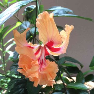 2年前に石垣島から持ち帰ったハイビスカス イエローフラミンゴさんがやっと咲いてくれました‼️ 島の農家さんで鉢植えで売ってたんですがどうにも飛行機では持ち帰れないサイズ… そしたら農家さんが売り物からパチンと若枝を切って挿し木で育てなと分けてくれました。 2年ぶりに農家さんにメールで写真を送ると覚えてくれており、非常に嬉しい気分になりました😁😁😁 フラミンゴの特徴はまだイマイチですがこれからも大事に育てて行こうと思います🎶