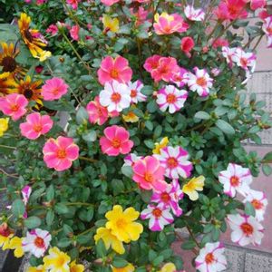 おはようございます😊☔ 夏のお花ポーチュラカ🌼カラフルで次々咲き始めました🌸🌼🌿 挿し芽で次々増やしています😊💞 今日もハッピーな一日をお過ごし下さい☺🍀