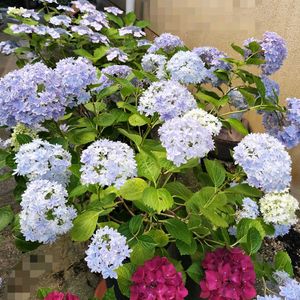 おはようございます 小雨が降っていますが 空が、明るくなってきました。 雨、上がりそうです 隣りとの境界に 並べている 紫陽花の鉢植え4鉢 梅雨空に 映えます( ꈍᴗꈍ)