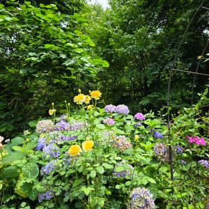 アジサイとバラ 一緒に楽しめました♪︎ 涼しい山の中に バラのいい香りが嬉しい~♡ 那須コピスガーデン🌿🌿🌿