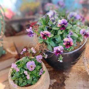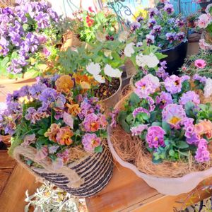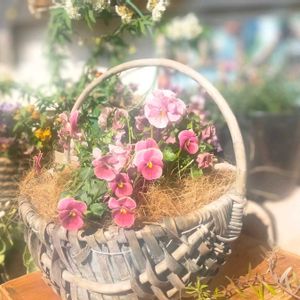 花を摘んだかのような ふんわりと籠のビオラ 冬の日に楽しめる お花♡ありがとう*♡〜。*♡