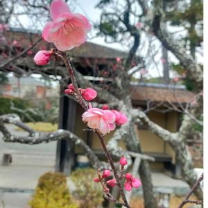 梅の木は 侘び寂び感じとっても好きです 掛け軸や襖に描かれるわけですね 後の茅葺きの門も素晴らしいです!