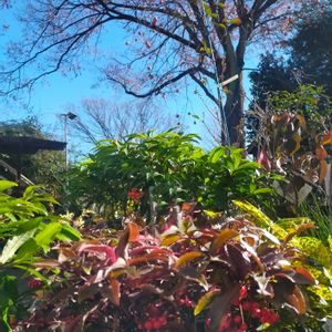 大人色の今日の花 このような公園の 植え方も足元かるくなりそうです! 去年の散歩より〜(*^3^)/~♡