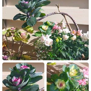 暮れの寄せ植え クリスマスぽくとか お正月らしくとか… 今はもっと春らしい雰囲気に なおそうかなと…思っています!(右) いつも綺麗なマンシェリーマダム(左)