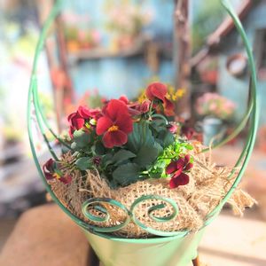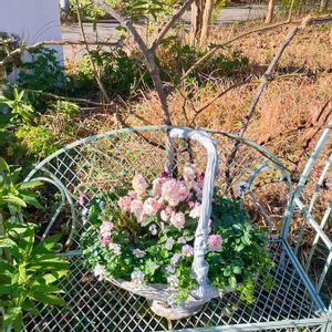 カゴのお花もベンチで ひと休みのような〜 フワフワが優しい今日のお花❀♡❀