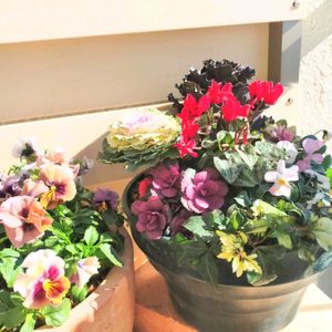 プリムラやハボタン パンジーなど🌿葉がのび 自然な感じになってきました! ジヨリージヨリ(パンジーの名前) 硬そうなイメージですが フランス語でとてもかわいいだそうです!