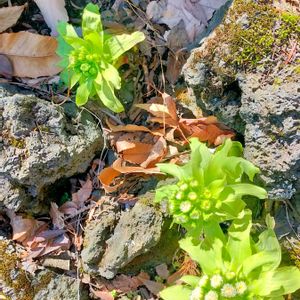 周りにはまだ冬🍂🍂の絨毯 きれいな爽やかなグリーンで 春のお知らせ💚✨今日のお花 蕗の薹 良い名前ですね!