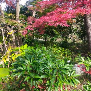 綺麗な紅葉の下に 🌿🔴小さな実が目立ちます! 今日のお花🌿