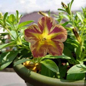 こんにちは😁 一番目のペチュニア、トラネコ🐱 咲きました🏵️ 今日からちょっと会社に出て、書類を 持って帰って家でパソコン作業です😁 半分在宅ですかね〰️😁 用事がなければ会社には行かないので まぁ、上手く行くかどうか分からないけど、せっかく会社のシステムを入れた パソコン用意してもらったし、おかげで あまり人には会わないし、とにかく やるしかないですね〰️😃💦