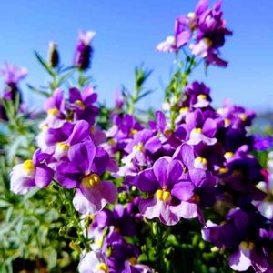 おはようございます😃 朝からたっぶりの日差しが 気持ち良いですね〰️😆⤴️💓 お日様に当たるのは体に良いと 言うことで、ベランダ作業で 恩恵に預かりたいと思いますよ😁 ネメシアブルーのバイカラー💜 奥のラベンダーと同じプランターに 同居中です😁 なぜなら色味が似てるからいいかな〰️って感じです😁 相性はわかりませんけど🤣🤣