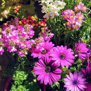おはようございます😃 いろんな色のリナリアと オスティオスペルナムアスティブルー それにパセリ😁 朝からお日様さんさんで まぶしいですね😆⤴️💓