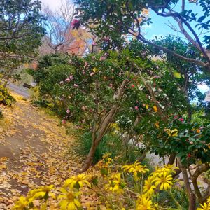 1⃣全体に渋さのある色合いが いい感じだと思いました! 2⃣大きな葉のカミヤツデから 紅葉眺めてみました!