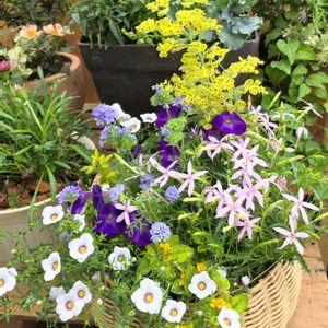 籠の中のふんわり~♡♪︎♡♪︎ 寄せ植えがそれぞれのび♪︎のび♪︎ 好きな感じになってきました♡ イトソマ☆ ニーレンべルギアなど……♪︎