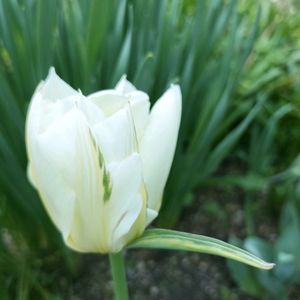 ビオラのなかに咲いた🌷🌷 あと2つ咲く予定です。 暮れに球根埋め込みました♪︎