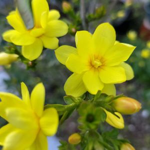 おはようございます 青空のきれいな日曜日の朝です 雲南黄梅(うんなんおうばい) 満開になりました💛☘️💛 ユーカリの木も大きくなり 青空に映えます 今日も穏やかな日でありますように