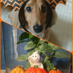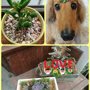 ゴーラム少し大きくなりました 嬉しい❤ 寄せ植えは以前ワークショップで作ったものです。 ワンコはアイコン写真のです。