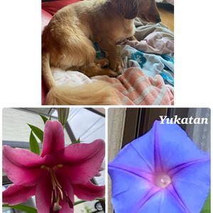 おはようございます😃 ⬆️畳んだ洗濯物をグチャグチャにして 怒られ🐶 反省の振りをするアンソニー😆 サマーカット✂️して、 尻尾はライオン風🦁 ⬅️今年も大輪のカサブランカ💖 良い香りです〰🎶 ➡️琉球アサガオ💙オーシャンブルー👍
