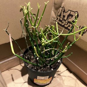 いつか育ててみたいと思っていたミルクブッシュ君。 なんとも弱々しい姿で見切品となっているこの子に出会い、わが家へお迎えしました。 元気になってくれるよう、これから手を尽くしていきたいと思っています!