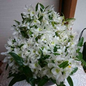 デンドロビューム エンジェル ベイビー グリーン 愛 お店で沢山植え込んであるのを見て、3鉢買い足して大きな植木鉢に入れました。