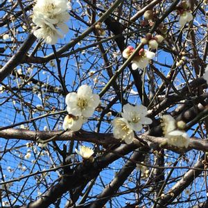梅の花が満開、横浜磯子の公園にて。 我が家の近くでは、まだ固い蕾ですが、やはり海の近くは、暖かいですねー。