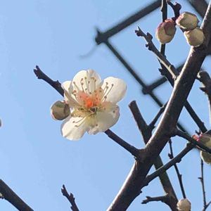 寒気の中に凛として咲く白梅の花。 梅の別名 初名草(ハツナグサ) 好文木(コウブンボク) 花の兄(ハナノアニ) その他色々あります。