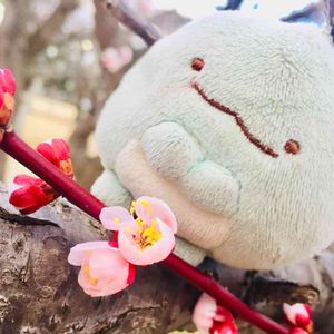 可愛らしい梅のお花🌸 枝の色も鮮やかで綺麗✨ 出演:友人のぬい🧸ちゃん