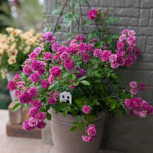 2025.0607(土) 先々週のことになりますが。。 鉢増し作業頑張りました。 1️⃣ ユキコ 禅ローズ つるバラ 7号ロングくらいの結構いい鉢に入っていましたが ひと回り大きいお気に入りのポットに鉢増ししました。 強健種で樹勢も強い子らしいのでとりあえずツルが伸びたら上へ誘導予定🚧 トゲがとても少ない品種なので 来年は玄関周りに誘引したいと思っています。 2️⃣ サイアカネ HT 個人育種家さんの入賞作品 日本ばら会の普及苗。やっと植え替えました😅 ばら会からきたくせに土が粘土のように粒子が細かくて良くなかったです。 でも、根は崩せないのでこのまま鉢増しです。 3️⃣ 挿し木のデンティベス 冬に色々挿したものの まとめてやるので。。 というか、単に管理ができていないせいなのですが どの枝がどの子か花が咲いて見るまでわからない子がほとんどです😅 この子も花が咲いて分かりました。 私結構咲かせてしまう派です😅 バラボランティアの冬剪定でいただいた枝でした。 これはかなり嬉しいです☺️ 4️⃣ スイートチャリオット 2/16に冬剪定した時にカットした枝を 休眠挿ししたもの。 紫色のお花が一輪咲いたので、スイチャリさんだと分かりました🌹 5️⃣ 3月にご近所さんの庭先のグリーンアイスを 剪定をして差し上げた時のカット枝を挿し木したもの。 お花を咲かせてくれました☺️