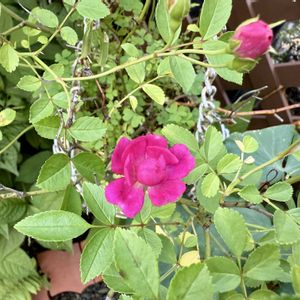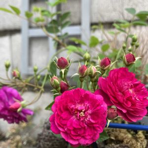 お早うございます🥰 今日は我が家のミニ薔薇系💖 去年コマツガーデンさんで購入したスタンドタイプの植木鉢がなかなか良い雰囲気を作ってくれています🤗💞 スイートチャリオットを植えるつもりで買ってきたんですよ〜😻枝が暴れるのが返って良いんですよね🤗次はグリーンアイスでやってみたいです🥰 2枚目はプチポワンちゃん😻よく咲いてくれました🤗 3枚目はお花長持ちのエクレール🥰 4枚目と5枚目は無もなきミニ薔薇…。5枚目はミニバラとは思えない大きさですね〜😆💓 そうそう、今朝花殻摘みをしていたら、無数のスリップスが出てきました🙀💦 見ただけで痒くなる〜😵💫 これからしばらくはお花も綺麗に咲かないかな〜😿