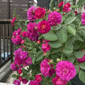 🌹バラとクレマチス💜 picは昨年のGSお休み中に 撮っていたものです😂 今年はクレマチス流星と ホワイトライトの開花が遅くて コラボならず💦 クレマチス アフロディーテエレガフミナ この紫色は本当にキレイ💜😍