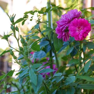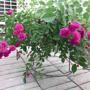 ミニバラスィートチャリオット🥀 グリーンアイスと一緒にお迎えしたんです✨ ベランダ狭すぎで写真撮る私のスペースが無いー!ミニ? 剪定でかなり小さめにしちゃったけど、もりもり育ってます〜 良い香り🥰