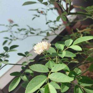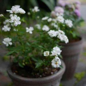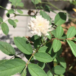 ミニバラ レンゲローズ。 控えめで清楚な佇まいが好き。