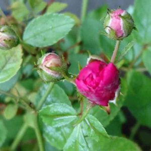 ミニ薔薇スイートチャリオット 春に虫に葉を食べられてしまったけど元気に蕾を付けてくれました🌹🎶