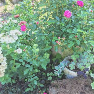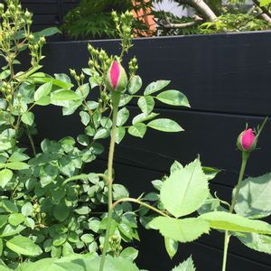 ピンクの蕾はオールドローズ 🌹ラレーヌヴィクトリア 左手はたくさん蕾をつけてくれているミニバラの スイートチャリオット💓 もう間もなく 待ちに待った開花を迎えます💫