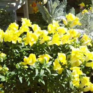 24℃~36℃☀️ 秋に鉢植えしたキンギョソウ・トゥイニー。 秋~春の豪華な咲き方とは違い、小さめにちらちらとかわいく咲いています✨ 本来オレンジだけど、この株は黄色になっています💛
