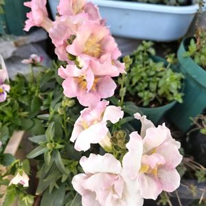 薄~いピンクの金魚草さん やっと咲き始めてくれました 普通サイズより少し大きめだけど 可愛さは変わりませんよ 🩷🤍(ฅ*'ᵕ'*ฅ)🤍🩷
