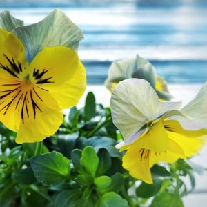 咲きはじめは鮮やかなブルーと黄色のパンジー𖥧 だんだんくすみブルーになります*̣̩ 咲き終わりのこの色の方が好きです☺️