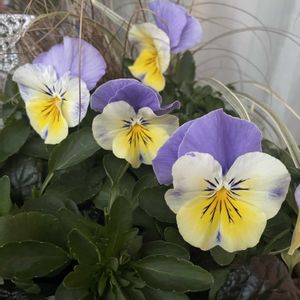 ①今年は、娘と息子の家の鉢には、パステル系のパンジーを植えました😊記録用。 園芸が楽しい(忙しい)季節になってきましたね〜😍 タキイさんから、パステルミックス12株を取り寄せると、パープル系ばかりが届き😂 (色お任せとはなっていたけどピンクと黄色も入れて欲しかったなー。) ホームセンターで、ユニークカラーのパンジーを買い足し、息子の玄関の寄せ植え作りました。 こんもり咲いてくれるのが楽しみです。 ②寄せ植えした今の鉢の様子